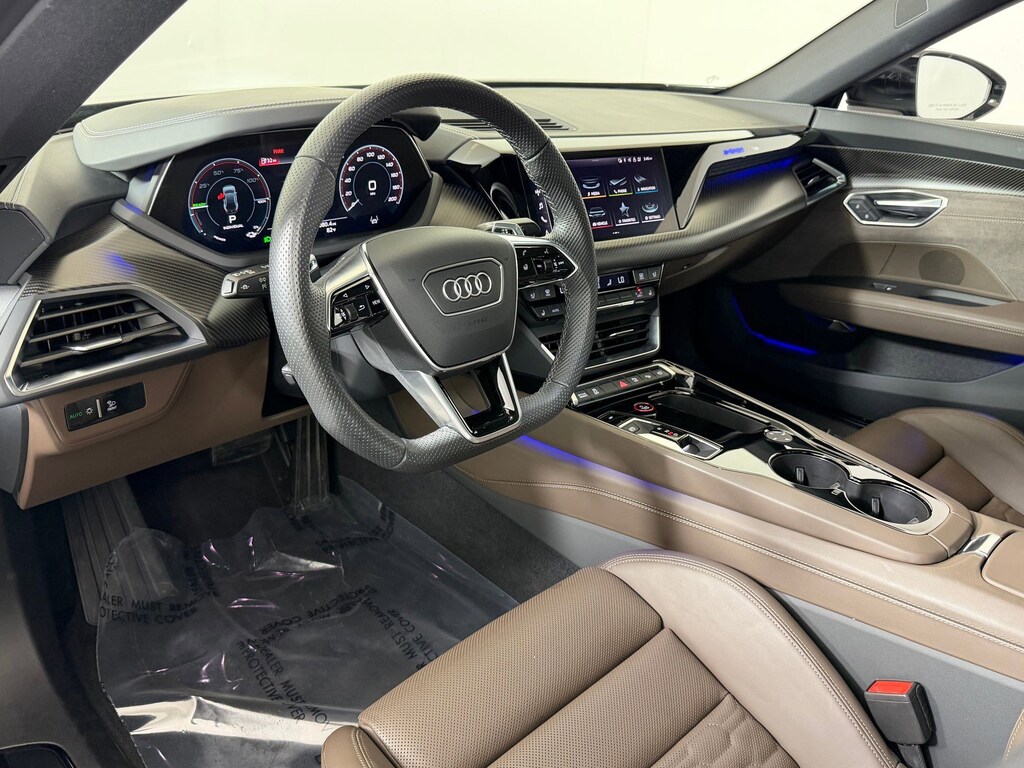 Powered by a high-performance dual-motor electric system, the Audi e-tron GT produces instant torque for rapid acceleration and smooth, silent power delivery. The advanced quattro all-wheel drive system ensures exceptional grip and control, while the finely tuned suspension provides a balanced ride that is both sporty and comfortable. Whether cruising on the highway or navigating city streets, this electric sedan offers precision handling and impressive responsiveness.