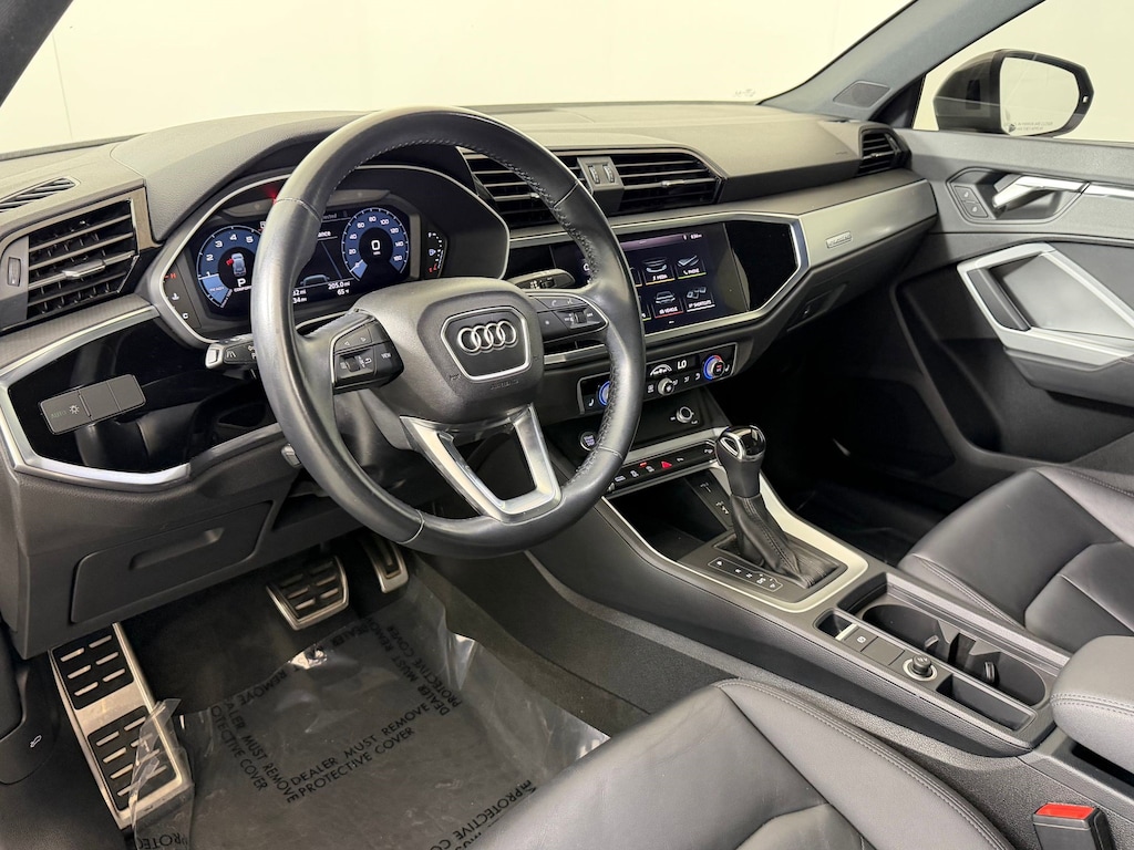 Inside, the Q3 S line Premium features a thoughtfully crafted cabin with high-quality materials and intuitive controls. The Audi virtual cockpit digital instrument cluster displays customizable driving information with crisp clarity, while the MMI touchscreen infotainment system keeps navigation, media, and vehicle settings within easy reach. Apple CarPlay and Android Auto compatibility ensure seamless smartphone integration for music, apps, and hands-free communication.